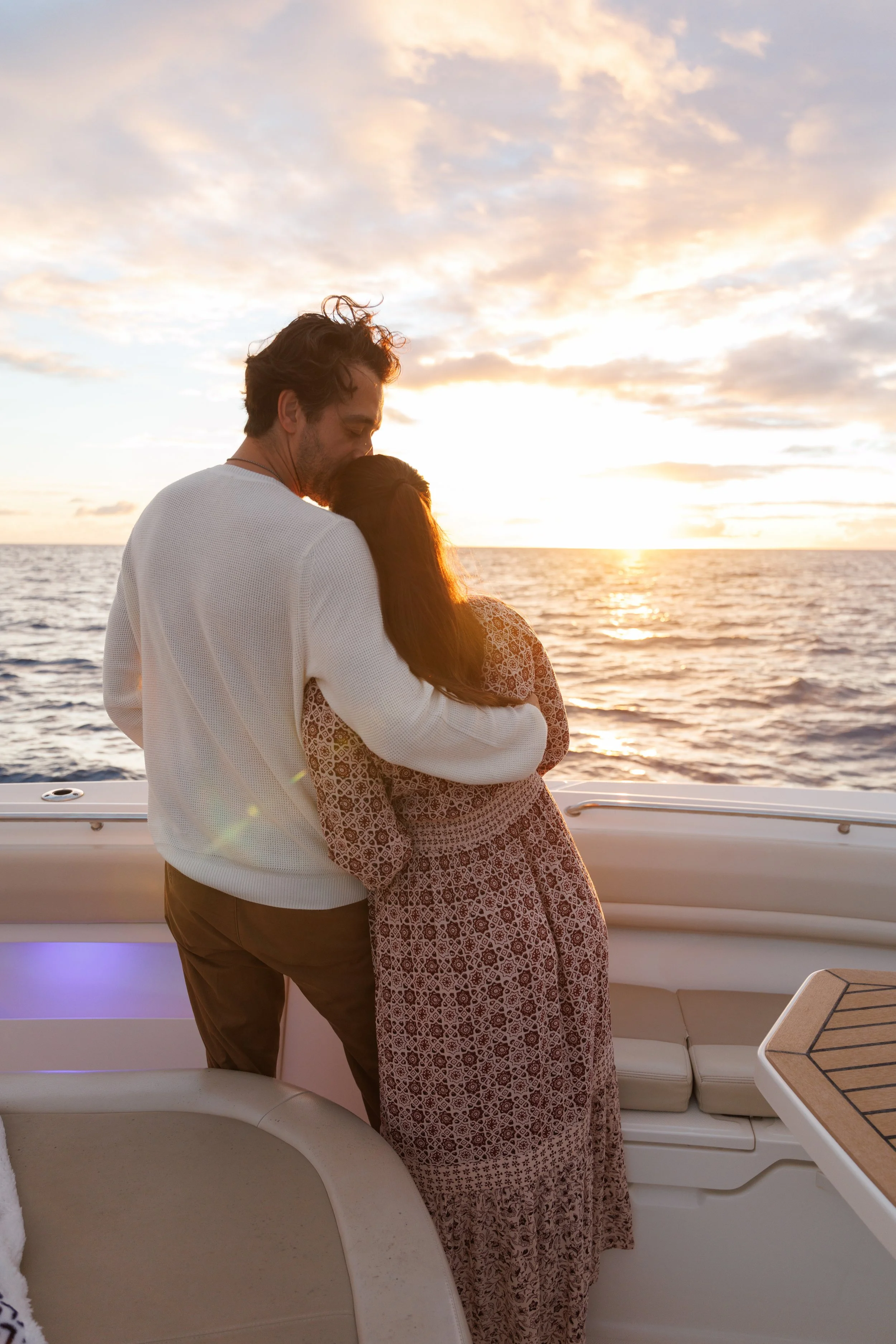 The day had come. That evening, Angela was expecting a sunset dinner on the west side of Oa’hu at the Four Seasons resort. “I read this was the best sunset view on the island,” I suggested casually. “We might walk the beach a bit before or after dinner,” I added. However, dinner was a decoy. When we arrived, Angela knew something else was up. I had pulled into a marina instead of the resort. Waiting for us in the parking lot was a boat captain. I had chartered a private boat to watch the sunset on the water — something I knew she would love.